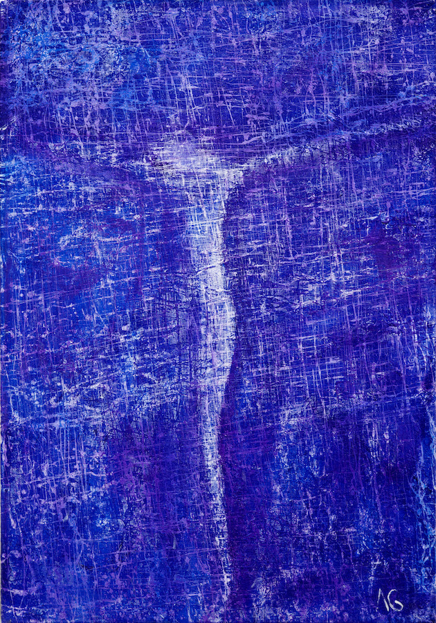 These forceful creative impulses that emerge from hidden landscapes of the soul could conveniently be called intuition which, in terms of Aristotle, appears as lucky, and in this case dexterous combination of instinct and intellect. And we can give them an even more appropriate name: qualitas occulta. It is a unique bond with the transcendent, with the Almighty, with God in Three Persons and Trinitarian God, and Saint Augustine talked about him as of "innermost inner self". Existentialist feeling of being thrown into the world, the feeling of not having foothold and of pointlessness, was transformed, in the Christian existentialism - which Ana Guberina makes present and presents on her canvasses with credibility - into theocentric, in other words Christocentric orientation of senses: faith and hope, loyalty and love.