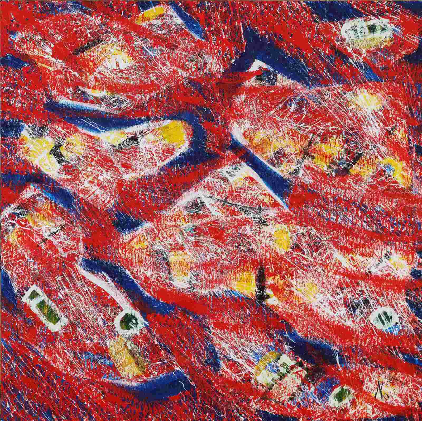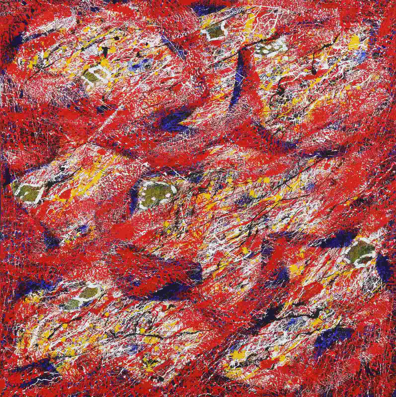 Without any pretence and with all certainty it is possible to establish that Ana Guberina does not have a comparable competitor in the Croatian painting when the encounter of religious experience and kinetic gesture and their interconnectedness is concerned. Not only kinetic, but also dynamic. This gesture is expressed by means of profuse dynamics mostly because it is not caused merely by a movement, an impulse of force in the spirit and hand - but the painter's entire being has been able to make real and to transfuse hidden stimula of the most intimate existential manifestation to a permanent impetus. Spiritual inclinations, individual and deeply personal, are grasping the general and universal. A microcosm and macrocosm in a particular anthropologic and cosmic dialectics.