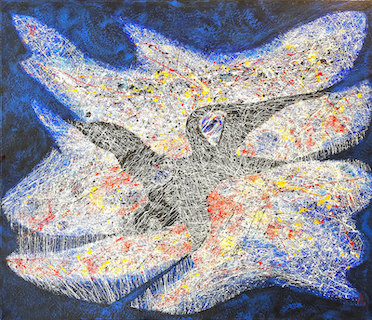 Dematerialisation of the material and abstraction of the subject-matter make the assimilated actualities stronger; reality is expressed more faithfully, better to say the truth, constitutive and absolute, that belongs to this reality. Really, the painter's handwriting, in its seeming asemantics, reaches towards the fullness of the truth. From these synthetic expressive lines, Ana Guberina has woven an extensive cosmos with Christ at its centre.